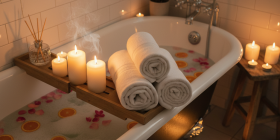 Gentle aromas support unwinding during evening wind‑downs and post‑soak cool‑downs.